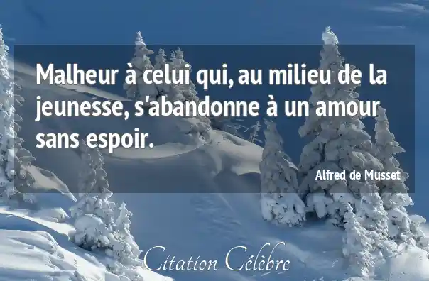 Malheur à celui qui, au milieu de la jeunesse, s'abandonne à un amour sans espoir.