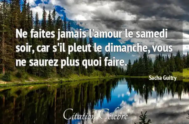 Ne faites jamais l'amour le samedi soir, car s'il pleut le dimanche, vous ne saurez plus quoi faire.