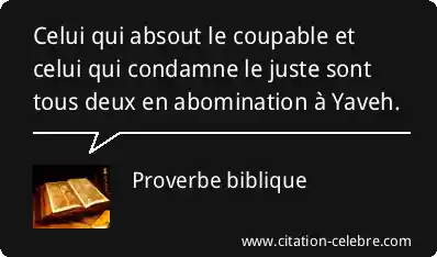 Celui qui absout le coupable et celui qui condamne le juste sont tous deux en abomination à Yaveh.