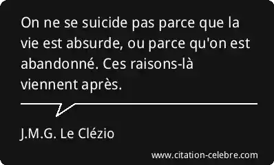 On ne se suicide pas parce que la vie est absurde, ou parce qu'on est abandonné. Ces raisons-là viennent après.