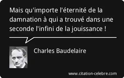 Mais qu'importe l'éternité de la damnation à qui a trouvé dans une seconde l'infini de la jouissance !