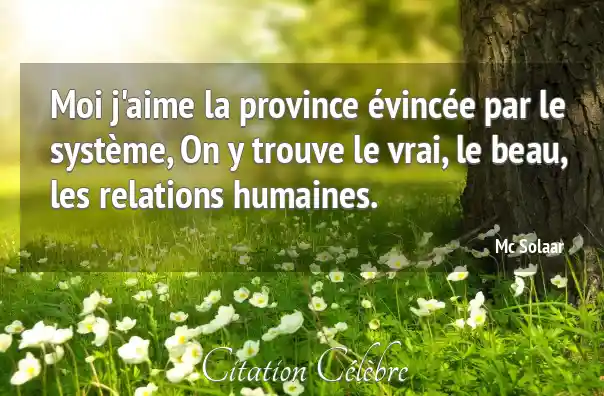 Moi j'aime la province évincée par le système, On y trouve le vrai, le beau, les relations humaines.