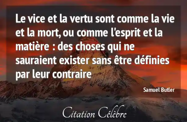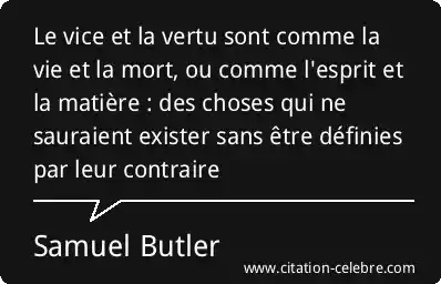 Le vice et la vertu sont comme la vie et la mort, ou comme l'esprit et la matière : des choses qui ne sauraient exister sans être définies par leur contraire