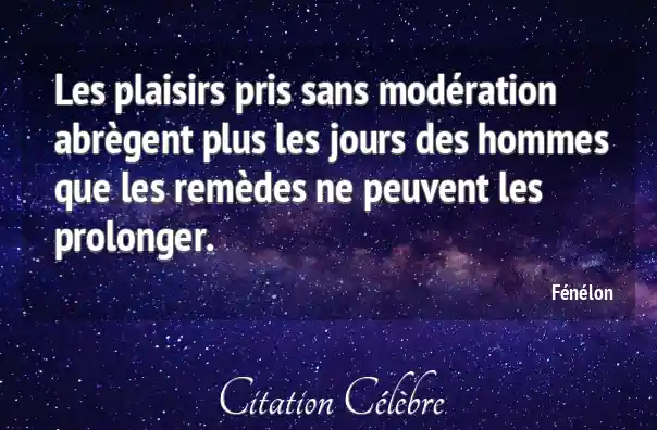 Les plaisirs pris sans modération abrègent plus les jours des hommes que les remèdes ne peuvent les prolonger.