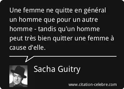 Une femme ne quitte en général un homme que pour un autre homme - tandis qu'un homme peut très bien quitter une femme à cause d'elle.