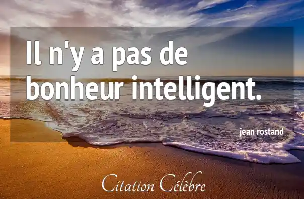 Il n'y a pas de bonheur intelligent.
