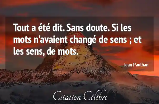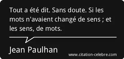 Tout a été dit. Sans doute. Si les mots n'avaient changé de sens ; et les sens, de mots.