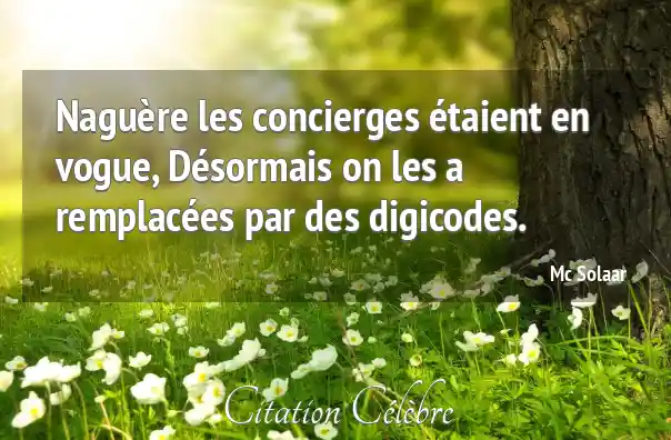 Naguère les concierges étaient en vogue, Désormais on les a remplacées par des digicodes.