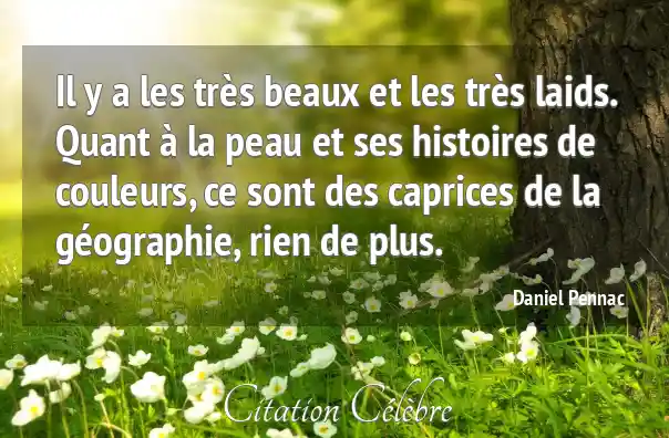 Il y a les très beaux et les très laids. Quant à la peau et ses histoires de couleurs, ce sont des caprices de la géographie, rien de plus.