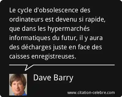 Le cycle d'obsolescence des ordinateurs est devenu si rapide, que dans les hypermarchés informatiques du futur, il y aura des décharges juste en face des caisses enregistreuses.