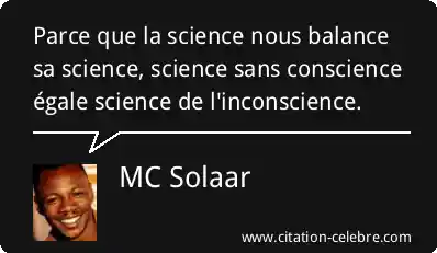 Parce que la science nous balance sa science, science sans conscience égale science de l'inconscience.