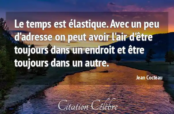 Le temps est élastique. Avec un peu d'adresse on peut avoir l'air d'être toujours dans un endroit et être toujours dans un autre.
