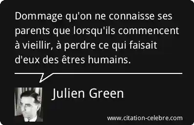 Dommage qu'on ne connaisse ses parents que lorsqu'ils commencent à vieillir, à perdre ce qui faisait d'eux des êtres humains.