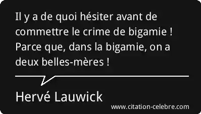 Il y a de quoi hésiter avant de commettre le crime de bigamie ! Parce que, dans la bigamie, on a deux belles-mères !