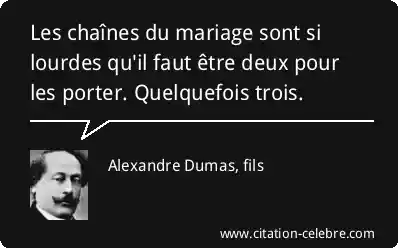 Les chaînes du mariage sont si lourdes qu'il faut être deux pour les porter. Quelquefois trois.