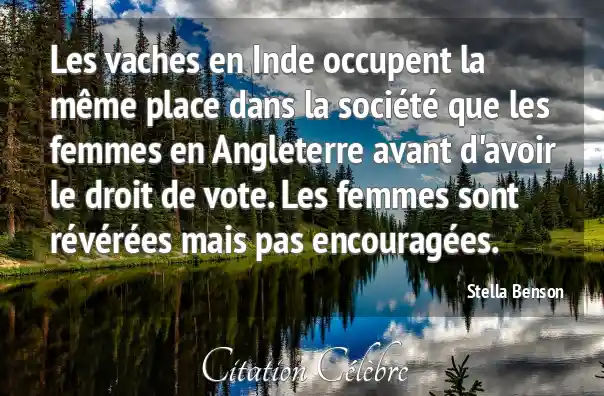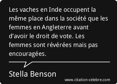 Les vaches en Inde occupent la même place dans la société que les femmes en Angleterre avant d'avoir le droit de vote. Les femmes sont révérées mais pas encouragées.