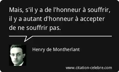 Mais, s'il y a de l'honneur à souffrir, il y a autant d'honneur à accepter de ne souffrir pas.