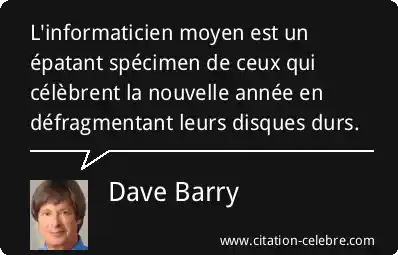 L'informaticien moyen est un épatant spécimen de ceux qui célèbrent la nouvelle année en défragmentant leurs disques durs.