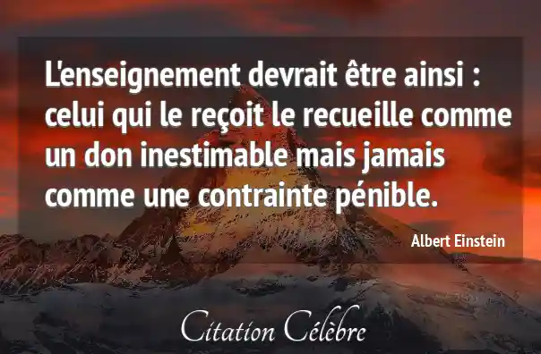 L'enseignement devrait être ainsi : celui qui le reçoit le recueille comme un don inestimable mais jamais comme une contrainte pénible.