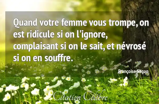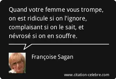 Quand votre femme vous trompe, on est ridicule si on l'ignore, complaisant si on le sait, et névrosé si on en souffre.