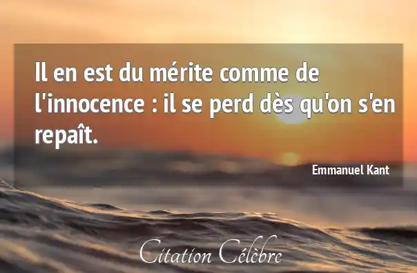 Citation Emmanuel Kant merite : Il en est du mérite comme de l'innocence : il...