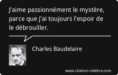 Citation Charles Baudelaire aime : J'aime passionnément le mystère, parce que j'ai toujours l'espoir de...