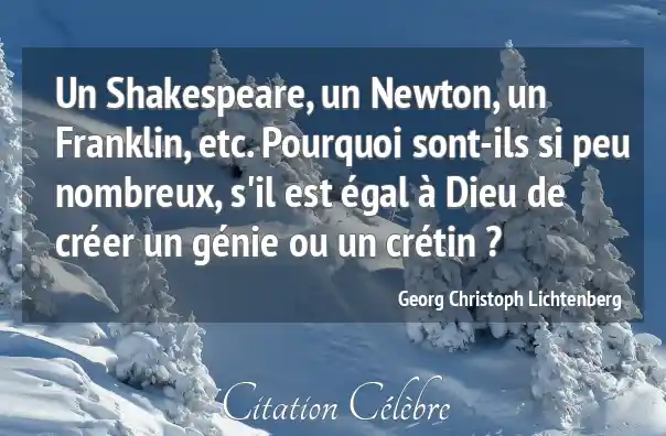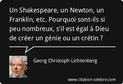 Un Shakespeare, un Newton, un Franklin, etc. Pourquoi sont-ils si peu nombreux, s'il est égal à Dieu de créer un génie ou un crétin ?