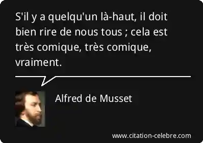 S'il y a quelqu'un là-haut, il doit bien rire de nous tous ; cela est très comique, très comique, vraiment.