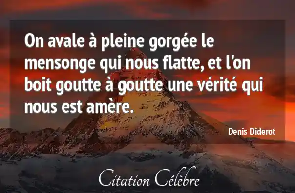 On avale à pleine gorgée le mensonge qui nous flatte, et l'on boit goutte à goutte une vérité qui nous est amère.