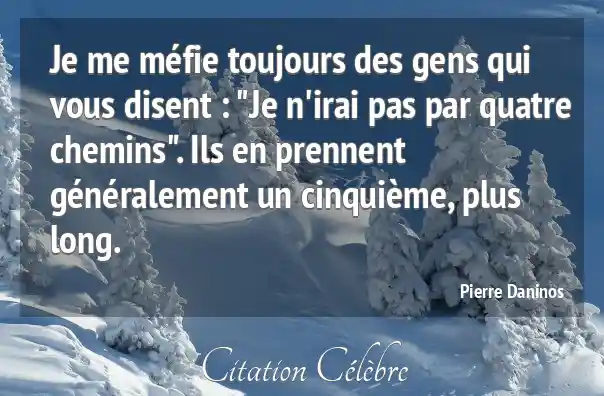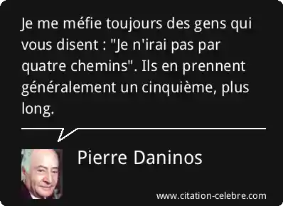 Je me méfie toujours des gens qui vous disent : "Je n'irai pas par quatre chemins". Ils en prennent généralement un cinquième, plus long.