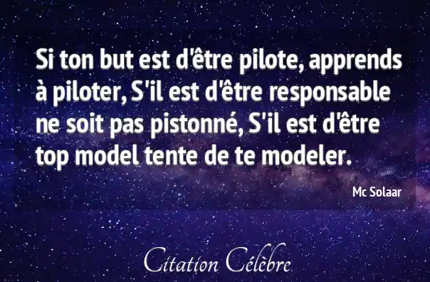 Si ton but est d'être pilote, apprends à piloter, S'il est d'être responsable ne soit pas pistonné, S'il est d'être top model tente de te modeler.