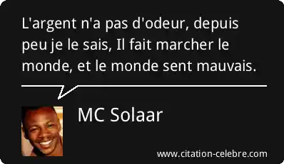 L'argent n'a pas d'odeur, depuis peu je le sais, Il fait marcher le monde, et le monde sent mauvais.