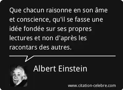Que chacun raisonne en son âme et conscience, qu'il se fasse une idée fondée sur ses propres lectures et non d'après les racontars des autres.