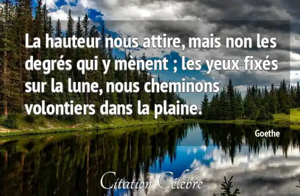La hauteur nous attire, mais non les degrés qui y mènent ; les yeux fixés sur la lune, nous cheminons volontiers dans la plaine.