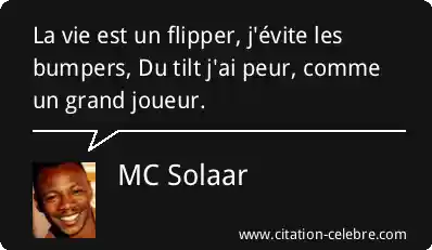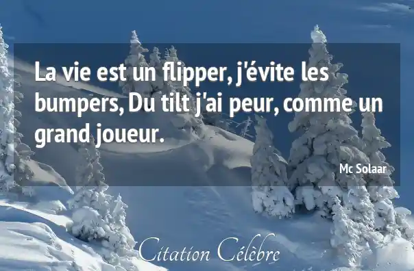 La vie est un flipper, j'évite les bumpers, Du tilt j'ai peur, comme un grand joueur.