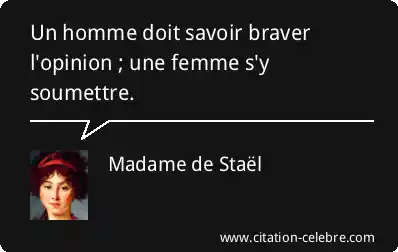 Un homme doit savoir braver l'opinion ; une femme s'y soumettre.