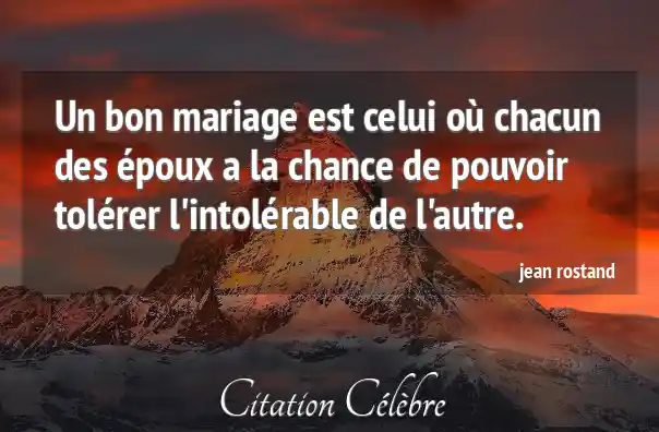 Un bon mariage est celui où chacun des époux a la chance de pouvoir tolérer l'intolérable de l'autre.