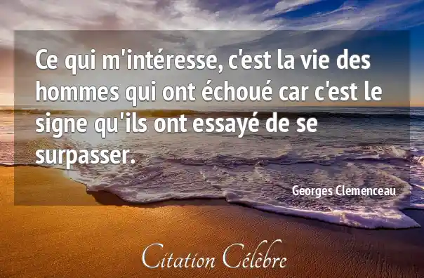 Ce qui m'intéresse, c'est la vie des hommes qui ont échoué car c'est le signe qu'ils ont essayé de se surpasser.