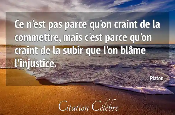 Ce n'est pas parce qu'on craint de la commettre, mais c'est parce qu'on craint de la subir que l'on blâme l'injustice.