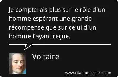 Je compterais plus sur le rôle d'un homme espérant une grande récompense que sur celui d'un homme l'ayant reçue.