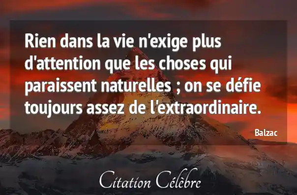 Rien dans la vie n'exige plus d'attention que les choses qui paraissent naturelles ; on se défie toujours assez de l'extraordinaire.
