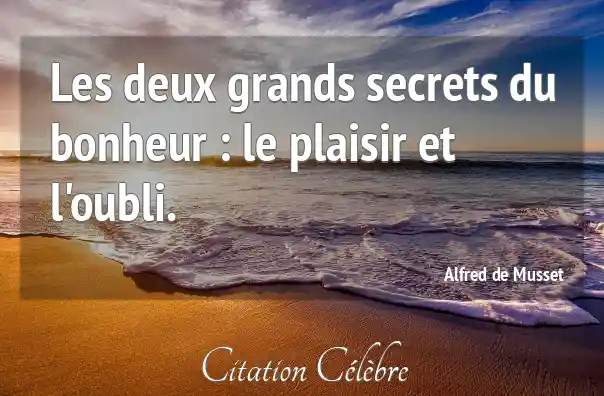 Les deux grands secrets du bonheur : le plaisir et l'oubli.