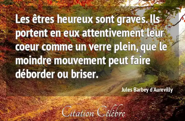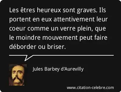 Les êtres heureux sont graves. Ils portent en eux attentivement leur coeur comme un verre plein, que le moindre mouvement peut faire déborder ou briser.