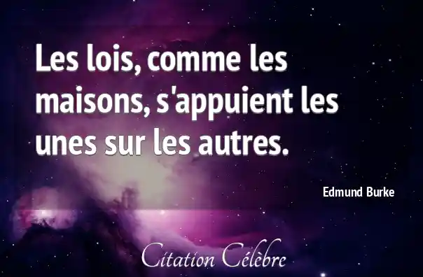 Les lois, comme les maisons, s'appuient les unes sur les autres.