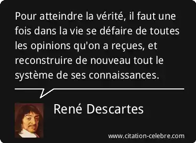 Pour atteindre la vérité, il faut une fois dans la vie se défaire de toutes les opinions qu'on a reçues, et reconstruire de nouveau tout le système de ses connaissances.