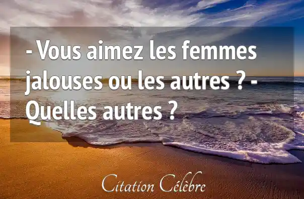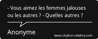 - Vous aimez les femmes jalouses ou les autres ? - Quelles autres ?