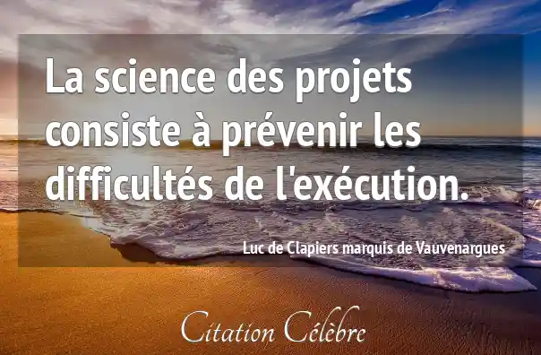 La science des projets consiste à prévenir les difficultés de l'exécution.