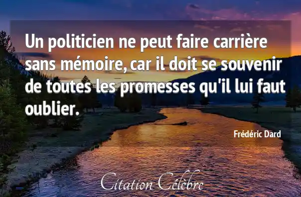Un politicien ne peut faire carrière sans mémoire, car il doit se souvenir de toutes les promesses qu'il lui faut oublier.