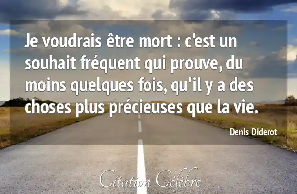 Je voudrais être mort : c'est un souhait fréquent qui prouve, du moins quelques fois, qu'il y a des choses plus précieuses que la vie.