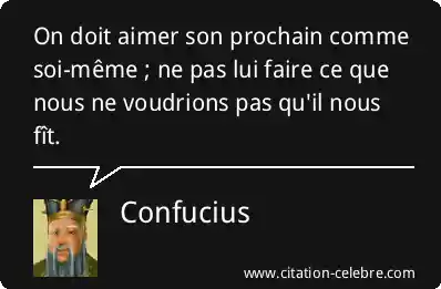 On doit aimer son prochain comme soi-même ; ne pas lui faire ce que nous ne voudrions pas qu'il nous fît.